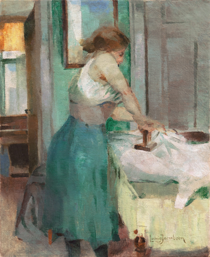 Jacobsen traveled and painted widely, including to Berlin and Dresden (1923), France and Spain (1929), Mallorca (1933) and again to France (1937). He exhibited widely and with success, including at the Paris Salon (1928-29) and frequently at the Charlottenborg Autumn Exhibition. He was a recipient of the 1921 Serdin-Hansens Prize (1921) and, in 1923, scholarships from both the Royal Academy and Raben-Levetzau. In 1929, He was awarded the Benzon scholarship. Ludwig Jacobsen's works may be found in the permanent collections of museums throughout Denmark and in many prominent public and private collections. Dating to circa 1915, this exquisite treatment of an intimate domestic subject is a masterpiece of compressed energy.